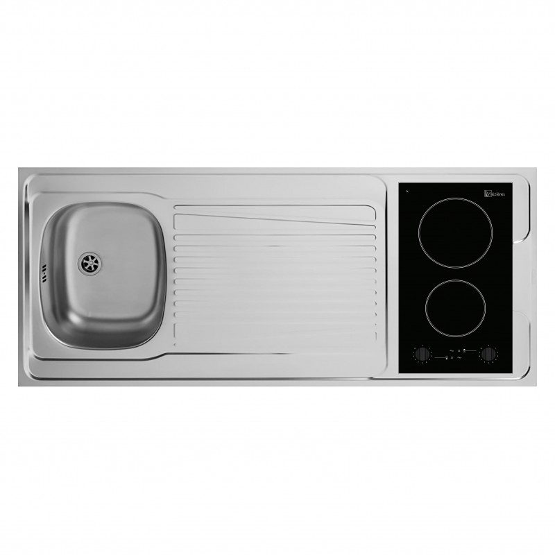 Plan évier dessus de kitchenette à poser 1 cuve finition en inox massif type 18/10 épaisseur 0,6mm procurant une bonne rigidité. Bonde inox à panier de 90mm de diamètre. Emplacement de plaque de cuisson pré-découpé, ainsi le renouvellement de la plaque est simplifié.Cet évier et multi-plaque, vous pouvez ensuite si vous le souhaitez changer de type de plaque. La fixation de la plaque se fait ais2ment avec une colle silicone qui assure une belle finition. L'évier est réversible, l'emplacement du mitigeur n'est pas percé, vous pouvez donc mettre la cuve à droite ou à gauche. Le perçage est simple et s'effectue à l'aide d'un emporte pièce. Dimensions de l'évier Largeur 140cm* profondeur 60cm* hauteur 5,5cm. Dimensions de la cuve largeur 345* profondeur 345* hauteur 157mm. Livré avec kit complet. Siphon à hauteur réglable avec prise de raccordement pour machine à laver et lave vaisselle.Raccordement pour tuyau de 40mm.