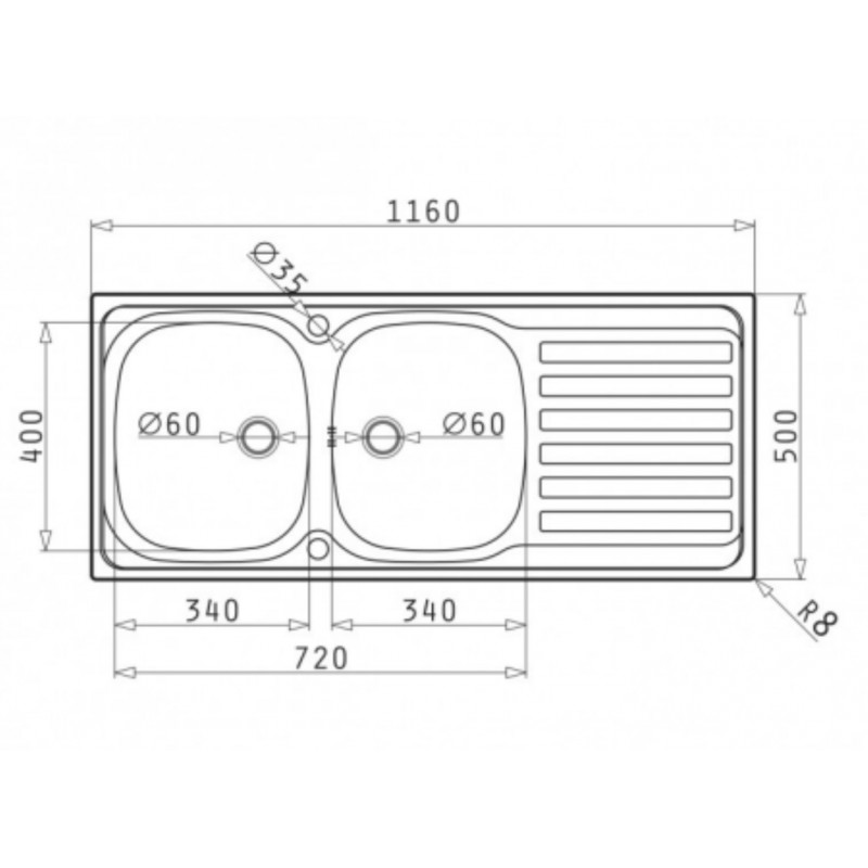 Évier 2 cuves 116 * 50 DERBY2P6NU