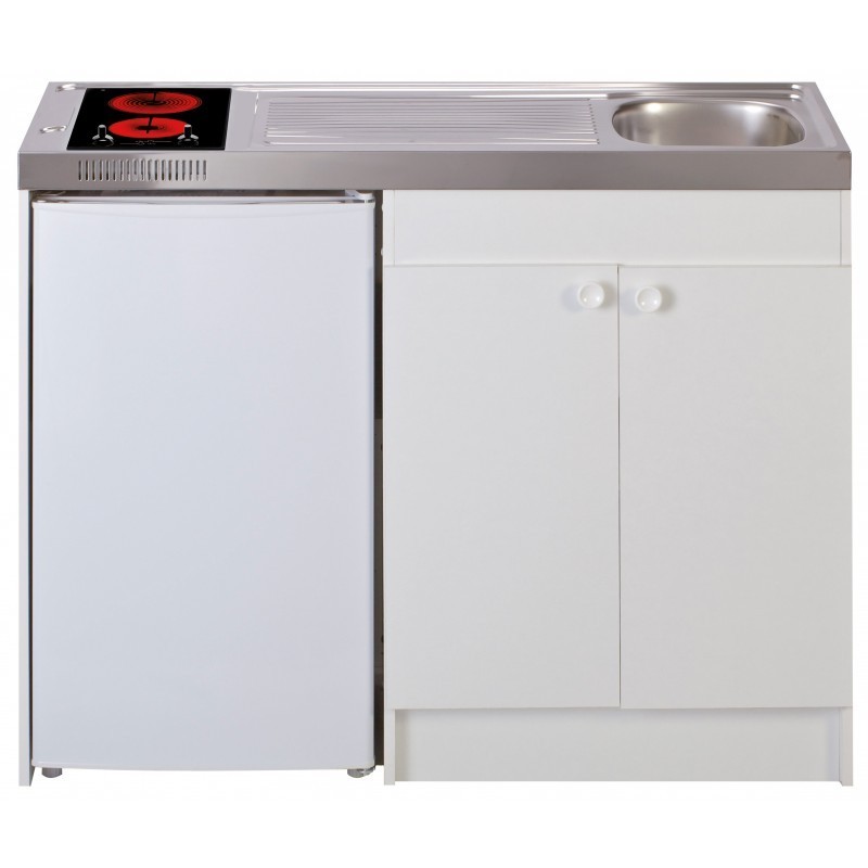Kitchenette 140cm domino vitro manette autostop évier inox 1 cuve réversible meuble 2 portes frigo 4* MEZIERES140DVMM2P116