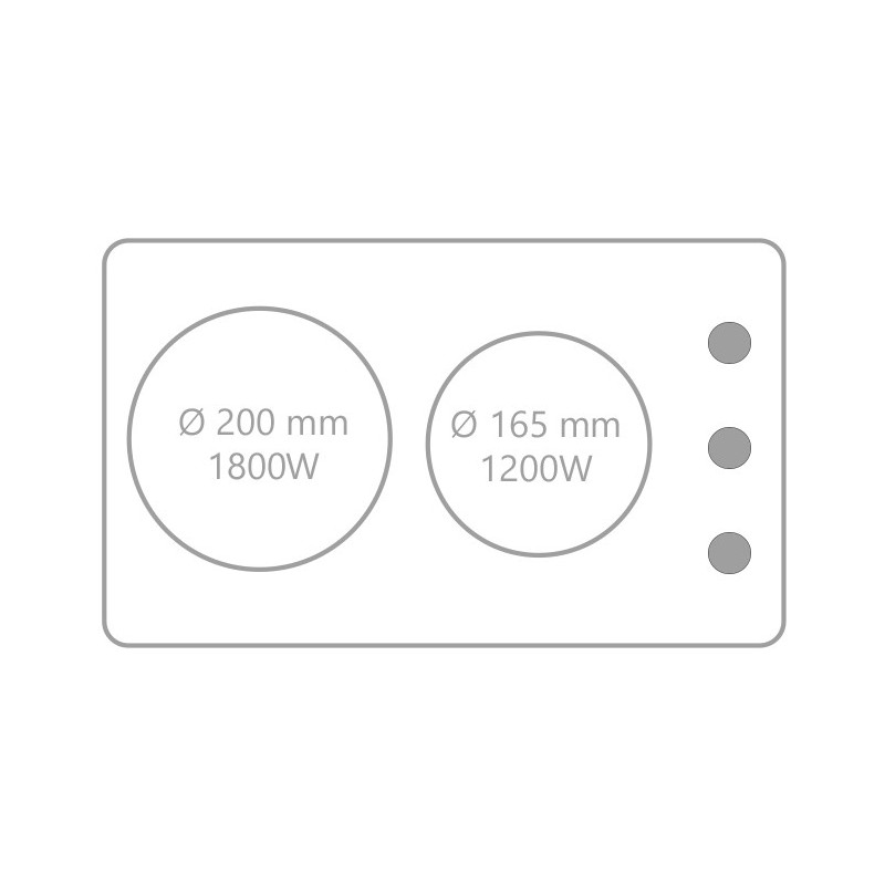Equipée de deux foyers radiants Hi-Light d'une puissance de 1200W en 14,5 cm et 1700W en 18cm commandés par des régulateurs d'énergie variables à bouton de contrôle, ceux-ci permettent d'effectuer toutes les préparations de cuisson et la rende utilisable de façon claire et simple par de nombreux utilisateurs.