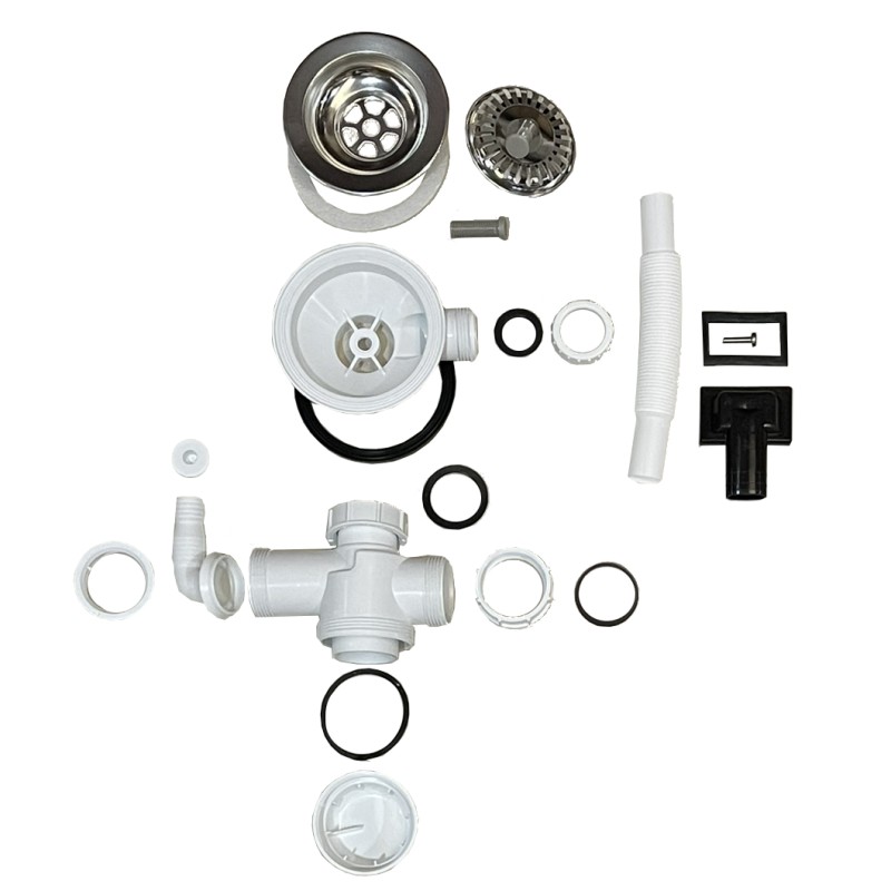 Livré avec kit complet. Siphon à hauteur réglable avec prise de raccordement pour machine à laver et lave vaisselle.Raccordement pour tuyau de 40mm.