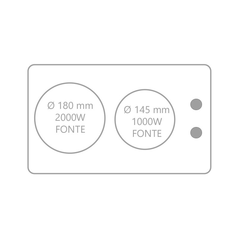 Equipée de deux foyers en fonte massive d'une puissance de 1500W d’un diamètre de 14,5 cm et 1500W d’un diamètre de 18 cm commandés par des commutateurs à 7 positions, ceux-ci permettent d'effectuer toutes les préparations de cuisson et assurent une chaleur constante.