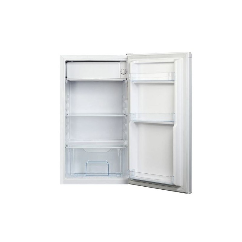 Equipée d'un réfrigérateur blanc 1 porte réversible d'un volume de 85 litres.