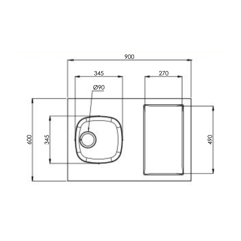 Dimensions de l'évier Largeur 120cm* profondeur 60cm* hauteur 5,5cm. Dimensions de la cuve largeur 345* profondeur 345* hauteur 157mm.