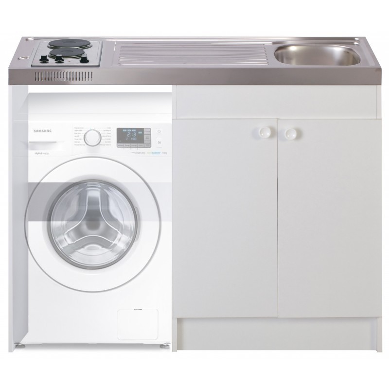 Kitchenette 140cm domino électrique minuteur évier inox 1 cuve réversible meuble 2 portes avec niche sans réfrigérateur MEZIERES140DETM2P