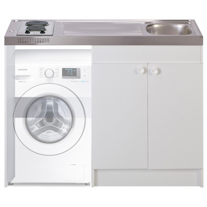 Kitchenette complète occupant une largeur de 140cm de large sur 60cm de profondeur.