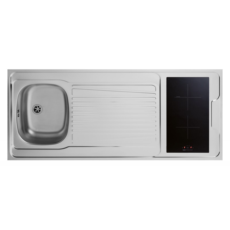 Kitchenette 140cm domino induction évier inox 1 cuve réversible meuble 2 portes avec niche sans réfrigérateur MEZIERES140DIM2P