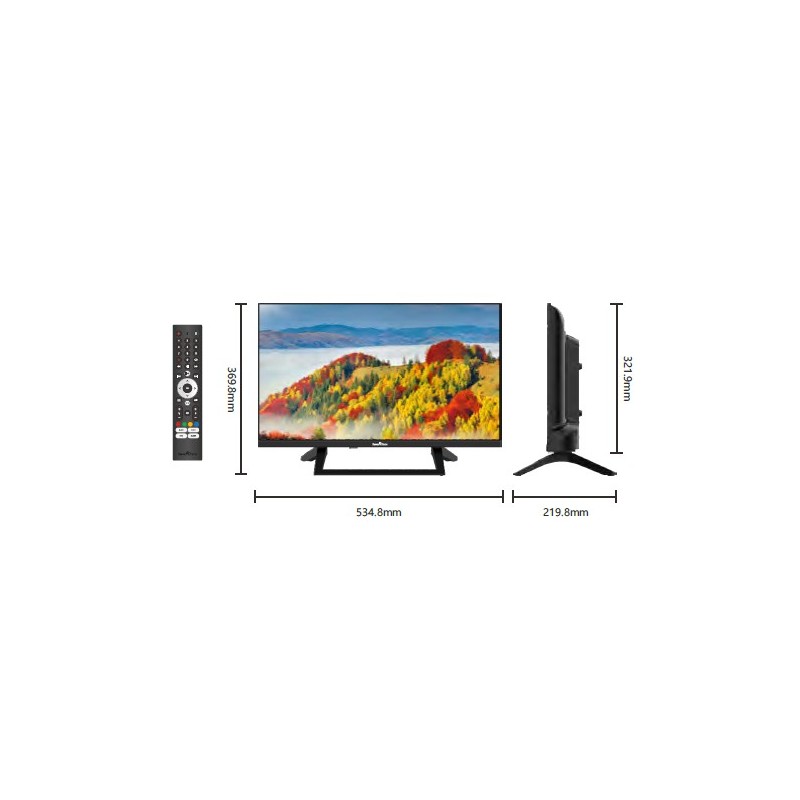 TV LED HD 24" Le 24HN010T3 est un TV LED FHD avec une qualité d'image exceptionnelle.DESIGN BORDS FINS Avec l'adoption de liaisons optiques de nouvelle génération, les cadres de TV SmartTech peuvent être plus fins.Le téléviseur bénéficie d'une plus grande zone d'affichage tout en conservant une conception soignée et contemporaine.Angles de vision plus larges jusqu'à 178 degrésExpérience visuelle immersiveUn design très finLes TV Smart Tech font moins de 8mm d'épaisseur avec notre technologie DLED de nouvelle génération.Adoptez pour votre maison un tout nouveau niveau d'élégance et de minimalisme.Pieds au look métallique avec un support stable INSTALLATION MURALE(support vesa en option)Fixez-le au mur pour qu'il s'intègre parfaitement dans la décoration intérieureHD prêtAffichage FULL HD pour des images nettes et réalistes.Technologie D-LED. Profitez des excellentes performances de votre TV Smart-Tech, grâce à son niveau de contraste clair et sombre ou ses performances de couleur.Un son incroyable avec la technologie Dolby Audio.